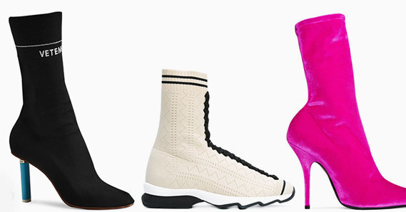 На протяжении нескольких последних сезонов дизайнеры активно продвигают идею носить открытую летнюю обувь на носки, колготы и капроновые чулки. В процессе даже сочинили модель-гибрид в виде полусапог с плотно облегающим лодыжку голенищем, имитирующую сочетание туфель, кроссовок и босоножек с чулочно-носочными изделиями. У Fendi — с полосатыми, у Céline — из спандекса, у Off-White — из пайеток. Дошло даже до абсурда — Демна Гвасалия на этой волне выдал сапоги-колготы. Но это издержки. Куда более жизненное воплощение идея нашла у Алессандро Микеле: он представил модель босоножек на тонких ремешках со съемным латексным носком, превращающим босоножки в ботильоны.