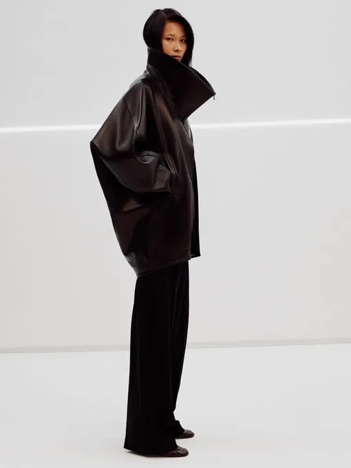 Весенние показы ясно дали понять: важен не конкретный фасон, а способ стилизации. Высокий воротник — элемент, который работает почти с любой верхней одеждой. Он добавляет образу визуальной сложности и одновременно решает практическую задачу. Закрытая шея сразу меняет интонацию: лук становится более цельным и продуманным, без лишних усилий. Именно такие вещи редко «простаивают» — к ним хочется возвращаться снова и снова. В 2026 году дизайнеры пошли дальше привычных решений и увеличили высоту воротников на несколько сантиметров. Ультравысокие варианты стали заметным мотивом, и их можно увидеть где угодно: на кожаных куртках с акцентной линией плеч, на утилитарных парках, тренчах, пальто и даже кожаных плащах. Модель в этом случае вторична. Этот трюк задает ощущение спокойной уверенной роскоши, которую мы видели в коллекциях Alaïa, Altuzarra, Chloé и других брендов. Без демонстративности, без перегруженности — только чистая форма и правильный акцент. Плюс он ценен еще и тем, что позволяет вам самостоятельно «включить» тренд: достаточно лишь поднять воротник.