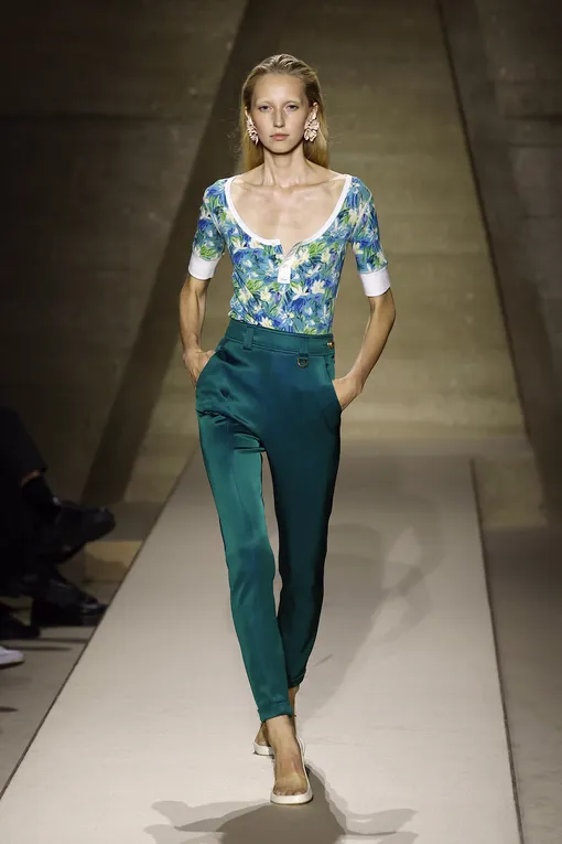 С точки зрения стилизации этот оттенок куда гибче, чем кажется. Он хорошо комбинируется с белым, черным и шоколадным. А если хочется игры на контрастах, то присмотритесь к дуэтам с желтым, красным, оранжевым или лиловым. Так, Loewe предлагает темно-зеленый пиджак комбинировать с красной водолазкой, а Bottega Veneta миксует сумку с оливковым комплектом и сливочно-желтым свитером. Тиловый особенно выразительно раскрывается на разных фактурах. Кожа придает ему глубину, замша — мягкость, а шелк подчеркивает его «текучесть». Он одинаково уверенно чувствует себя и в повседневных сценариях, и в более нарядных выходах. А в офисе тиловый работает как продуманная альтернатива привычному темному: костюм в этом оттенке выглядит строго, но необычно. Вечером он легко смещается в сторону элегантности — за счет кроя и фактуры. И, конечно, этот цвет прекрасно живет в аксессуарах. А больше идей для образов вы найдете в галерее ниже.