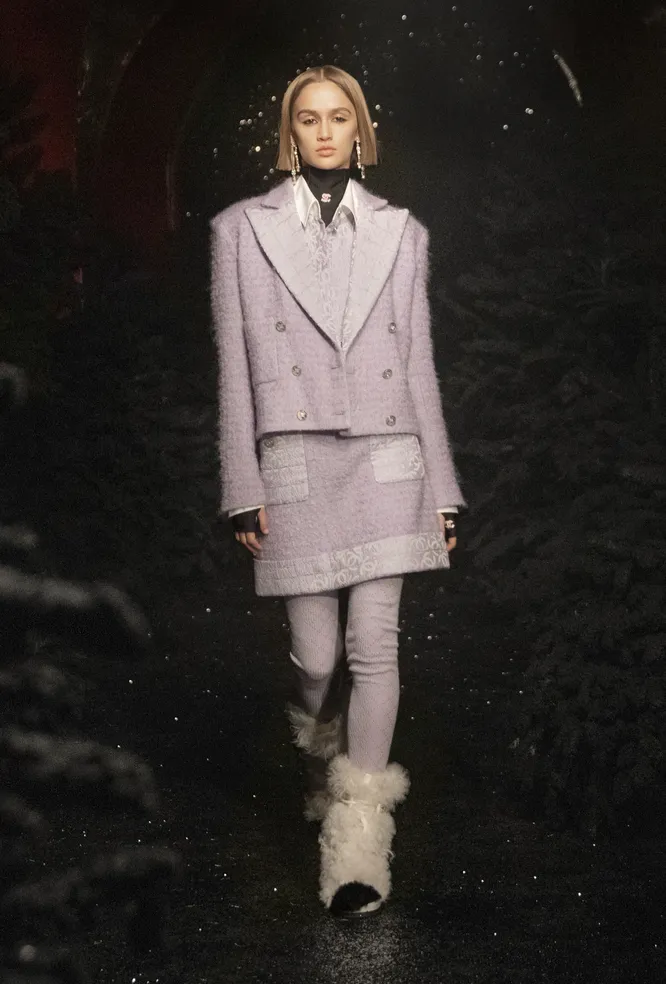 Для особых случаев запаситесь лодочками и сияющим топом, как модели Saint Laurent. Чтобы не замерзнуть — по крайней мере, пока ждете такси — просто дополните лук плотными черными колготками. Наконец, всегда можно надеть унты — Миучча Прада и Виржини Виар будут вами довольны.