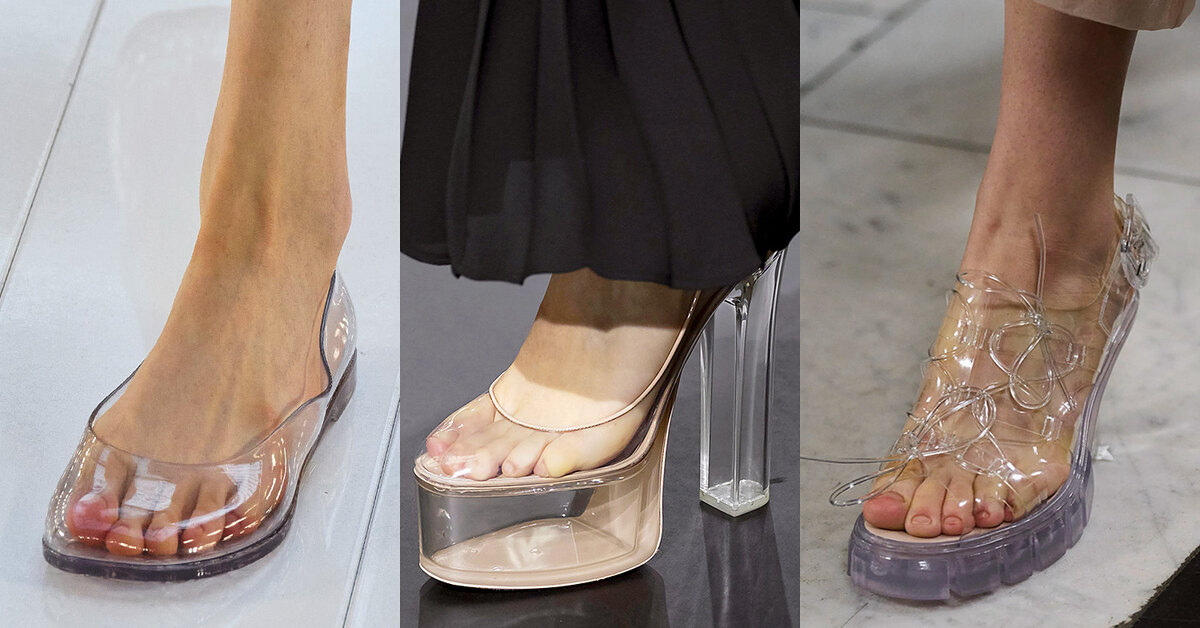 Мода циклична, и если какие-то тренды возвращаются спустя пару десятков лет, другие успевают сделать это всего за пару сезонов. Помните, как пару лет назад, все вокруг носили яркие полупрозрачные туфли Amina Muadi, а потом их все резко записали в антитренды. И вот, в сезоне весна-лето 2023 прозрачная обувь возвращается: судить об этом можно о ее количеству на показах последних Недель моды. Причем прозрачность обуви достигла апогея: туфли, балетки и босоножки теперь едва ли заметны на ноге.