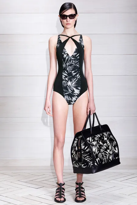 Даже на пляж берете с собой «картину-корзину-картонку»? В коллекции Джейсона Ву вы найдете вместительную сумку с тем же принтом, что и на купальнике.