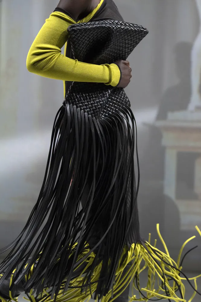 Правда, кое-что в дизайне клатчей в этом сезоне изменилось — размер. Они определенно стали больше и вместительнее. Самые популярные модели вполне способны вместить в себя весь минимум необходимых вещей, которые понадобятся вам в течение дня, а не только помаду и кредитную карту. Именно такие варианты показали на подиуме Bottega Veneta, Jil Sander и Prada. Впрочем, совсем списывать со счетов миниатюрные минодьберы не стоит — они по-прежнему идеальны для вечерних выходов, когда много вещей при себе иметь не нужно, а большая сумка выглядит слишком громоздкой. В нашей подборке мы собрали 10 самых красивых клатчей сезона, которые впишутся в самые разные образы и пригодятся в любой ситуации. Вам предстоит торжественный вечерний выход? Ваш выбор — черная «малышка» Prada с россыпью сияющих кристаллов. Хотите разбавить офисный гардероб и пойти с клатчем на работу? Обратите внимание на модели Khaite и Loewe — они будут вместительнее многих тоутов! Вероятно, самая эффектная сумка из представленных — Bottega Veneta с фирменным плетением intrecciato и очень трендовой длинной бахромой — с ней вы точно не останетесь незамеченной! Для поклонниц по-прежнему актуальной формы «пирожка» — небесно-голубой мягкий клатч Mansur Gavriel. Синтез женственности и грубой силы — сумка Alexander McQueen в мягкой замше красивейшего горчичного оттенка, снабженный «кастетом» с кольцами, чтобы ее удобнее было держать в руке. Ну а варианты Roger Vivier и Miu Miu отлично впишутся в романтичные образы и понравятся настоящим «тургеневским девушкам». Что бы вы ни выбрали — от вас гарантированно нельзя будет оторвать глаз.