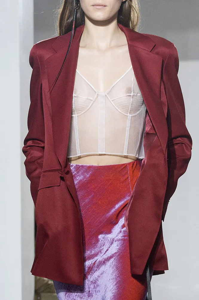 Если вы не готовы последовать примеру Сары Джессики Паркер, которая разгуливает по Нью-Йорку в пижаме и кружевном бра, то начните хотя бы с топа в бельевом стиле. Их давно полюбили супермодели, начиная от Кейт Мосс и заканчивая Кендалл Дженнер. Сексуальный топ из тонкого кружева или шелка особенно женственно смотрится вместе с классическими джинсами с высокой посадкой или широкими брюками. Еще один вариант — комплект из прозрачного топа и костюма мужского кроя. Вы точно не останетесь незамеченной!
