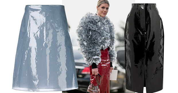 Винил, наравне с леопардовым принтом и клеткой, завоевал улицы фэшн-столиц и сердца известных модниц. Уже в конце зимы они щеголяли в блестящих тренчах, надевая их на теплые свитера и шерстяные брючные костюмы, а теперь наступил черед виниловых юбок в мини- и миди-длине, чтобы носить их с короткими жакетами и пальто и плащами нараспашку.