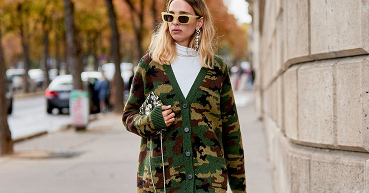 Не стоит ассоциировать камуфляжный принт исключительно с военной униформой: сегодня вещи с «защитной» расцветкой могут выглядеть совсем иначе, и снимки парижского стритстайла тому доказательство. Здесь и уютные «бабушкины» свитеры и джемперы, и элегантные жакеты, и легкие блузы. Играйте на контрастах: не ассоциирующийся с женственностью камуфляж дополняйте лодочками и ботильонами на шпильках, надевайте летящие юбки под свитеры и облегающие топы с брюкам. Сочетайте с любыми оттенками, но старайтесь не перебарщивать с пестрыми принтами: предоставьте камуфляжу возможность солировать.