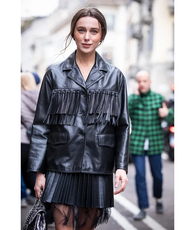 Российская осень непредсказуема в своем климатическом настроении: погожие дни сменяются затяжными дождями, промозглыми вечерами и хмарью за окном. К счастью, один из главных трендов этой осени оказался на руку российским модницам: сегодня на пике популярности вещи из кожи, которые не только украшают любой образ, но и не боятся ветра и дождя. Одной из самых оправданных покупок на первую половину осени станут кожаные жакеты — они заменят громоздкие куртки и спортивные ветровки и непременно станут акцентом в повседневных и вечерних выходах.
