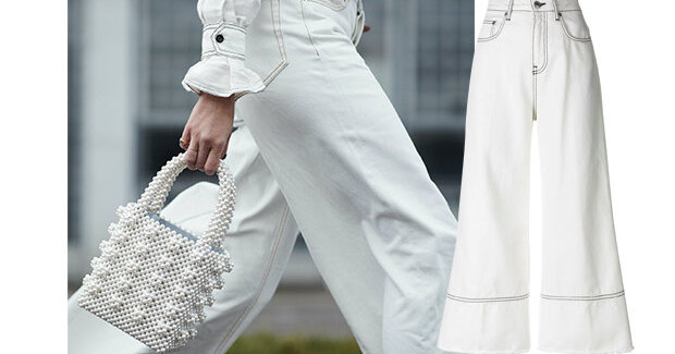 В качестве одного из источников вдохновения предлагаем выбрать белоснежные джинсы, но не классические, а нестандартные модели — с яркими красочными брызгами, перфорацией, напоминающей мыльные пузыри, объемной вышивкой или вовсе с двумя брючинами разного цвета — с такой вещью вы точно всегда будете в центре внимания.