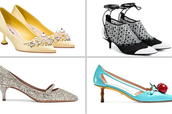 Классическая женственность постепенно возвращает свои позиции – после долгого периода засилья кроссовок и вездесущей street wear мы снова хотим примерить подчеркивающие фигуру платья и красивые туфли. Если идти на компромисс с собственным ощущением комфорта вы не готовы, всегда можно найти промежуточный вариант между сексуальностью и удобством. Так, туфли на низком каблуке kitten heel высотой не более 5 см – отличная возможность оставаться женственной, не обременяя себя мучениями от неудобной обуви. К тому же, в следующем сезоне такая модель будет особенно актуальна, в доказательство чему – наша подборка.