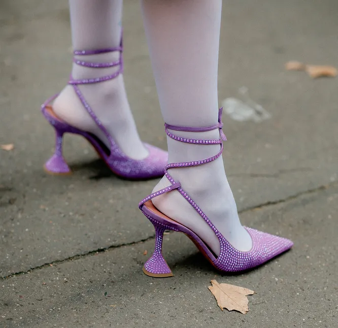 Головокружительный каблук туфель «братц» Versace пусть вас не пугает: благодаря ремешку на щиколотке и устойчивой платформе это еще одна модель, идеально подходящая для вечеринки. Подобные «кукольные» босоножки найдутся также в коллекциях Valentino, Jimmy Choo и Gianvito Rosso. Советуем играть по-крупному и выбирать яркие оттенки: фуксию, актуальный желтый и «цвет года» very peri.