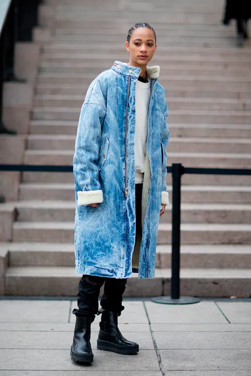 Если вы не поклонница классических песочных пальто и строгих тренчей, то настоятельно рекомендуем присмотреться к нетривиальным моделям из денима. Во-первых, джинсовые вещи, в том числе тотал-луки, сейчас на пике моды. А во-вторых, пальто из денима отлично согревают, что немаловажно для прохладного марта, подходят для повседневных спокойных образов и хулиганских идей для стритстайла и к лицу абсолютно всем.
