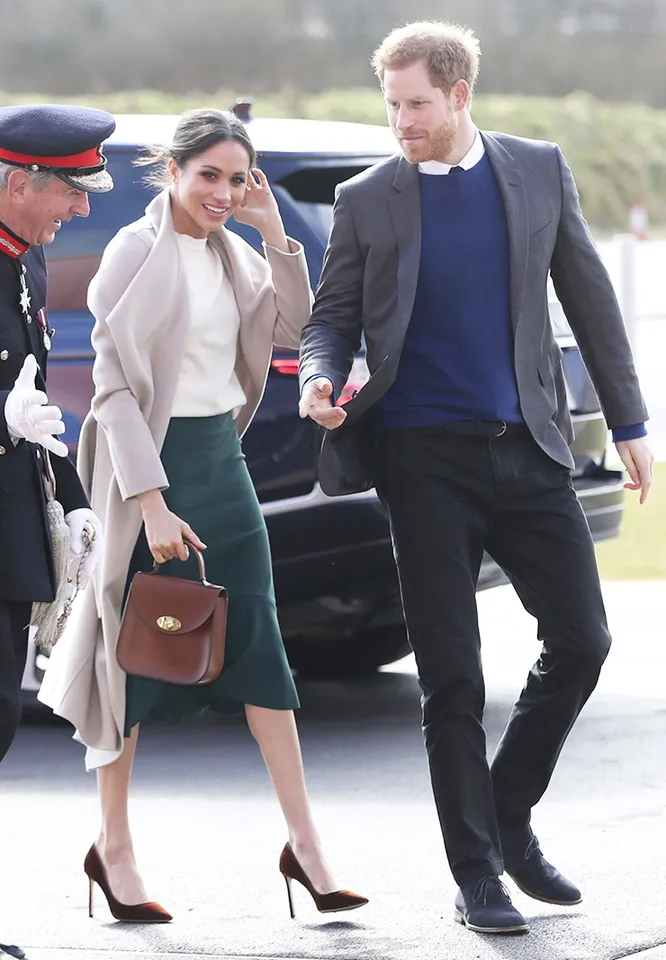 Меган Маркл и принц Гарри неожиданно приехали в Северную Ирландию, и будущая невестка принца Чарльза произвела фурор среди местных жителей. Особенно запомнились бархатные лодочки Меган необычного и сложного коричневато-рыжего оттенка, которые стали главной изюминкой ее образа.