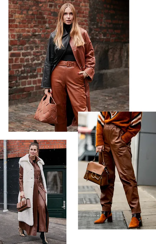 Вещи из кожи — один из главных трендов нового сезона. Возьмите на заметку, что самым популярным у дизайнеров стал отнюдь не черный, а коричневый цвет, который по праву считается не менее универсальным. Теплые и холодные оттенки можно было увидеть на показах Fendi, Max Mara, Hermès. Тренд поддержали и звезды стритстайла, которые облачаются в тотал-луки шоколадного цвета. Если не решитесь на пальто, жакет или платье, то аксессуаром обзавестись точно стоит. Лучшие — в нашей подборке.