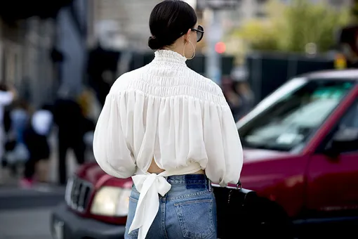 Лето-2018 выдалось романтичным: самые модные девушки носили светлые воздушные блузы с открытыми плечами и объемными рукавами, платья с оборками и кружева. С наступлением осени топы-корсеты, как у героинь картин Ренессанса, можно сменить на викторианские рубашки с высоким воротом, бантами и плечами-фонариками. Носите их с нейтральной классикой вроде любимых джинсов и пробуйте более смелые сочетания. Например, с кожаными брюками — получится образ в духе глэм-рока 70-80-х.
