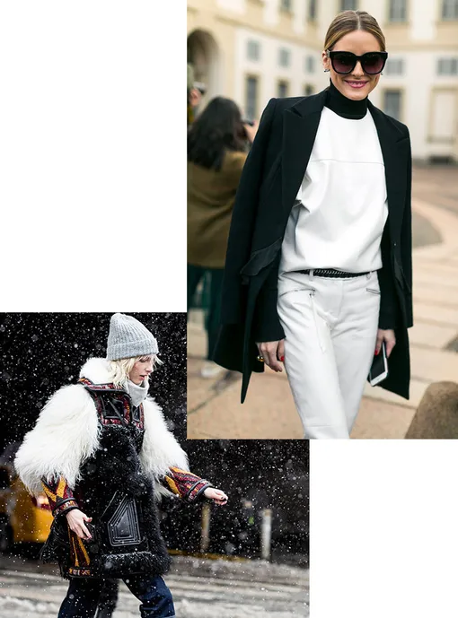 Каждая осень похожа на предыдущую хотя бы тем, что с первыми опавшими листьями наш гардероб неминуемо чернеет, а белые вещи, за исключением разве что базовых футболок, перестают в нем существовать как факт. Считаем нужным прервать этот порочный круг и вернуть белоснежные джинсы, туфли, сумки и аксессуары в дождливую реальность. Пусть они станут светлым протестом против серой московской действительности. Для пущего эффекта докупаем шубы, пальто, ботильоны, сапоги, шарфы и шапки цвета ванильного зефира. Учиться носить это маркое богатство давайте будем у лучших — звезды стритстайла и знаменитости с гениальными стилистами за плечами плохого не посоветуют.