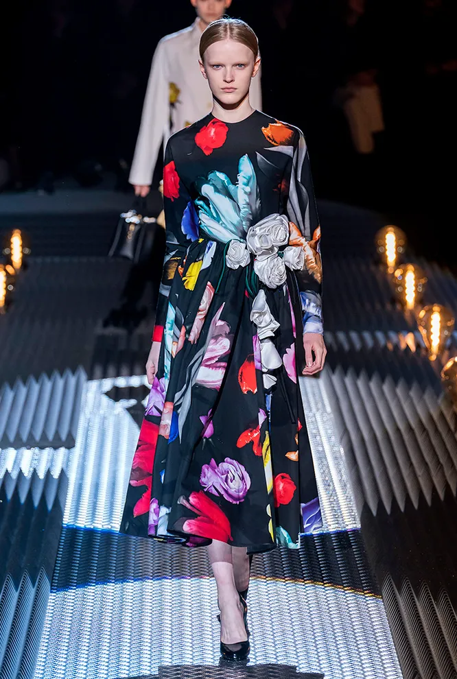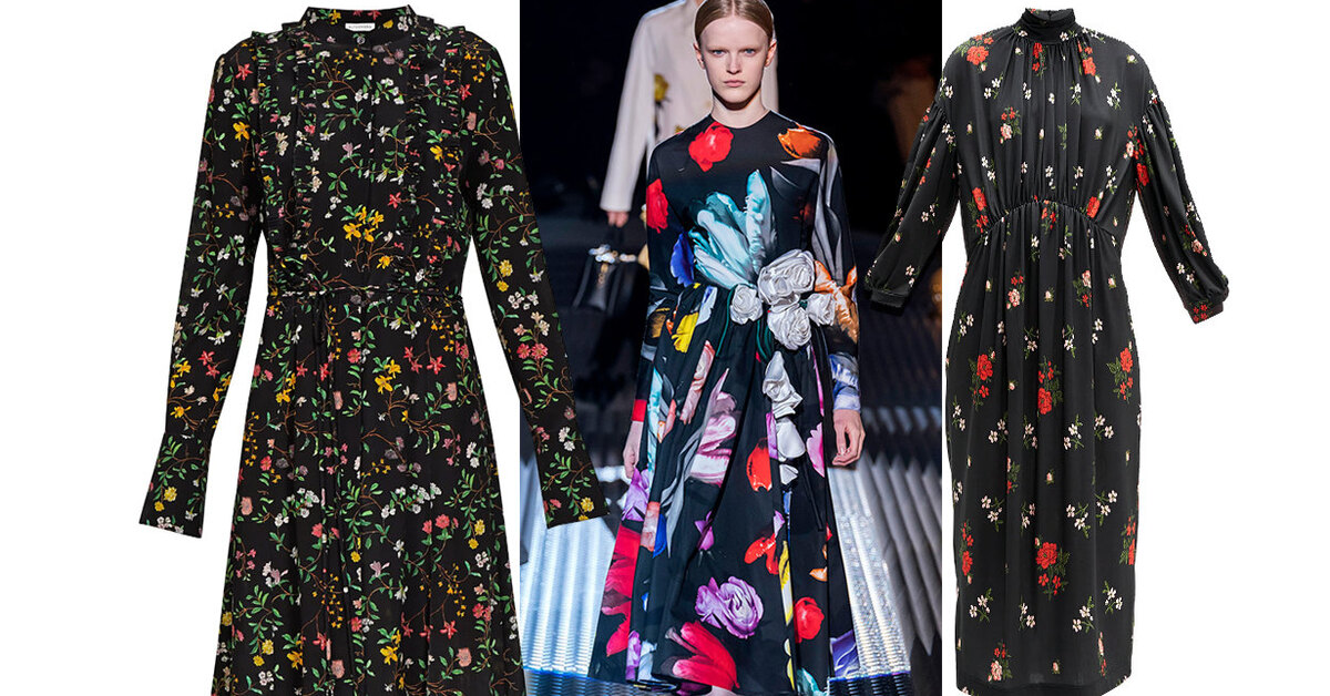 На многих осенне-зимних шоу мы видели цветочные платья — но не типичные, приторно-романтичные, а, напротив, непривычно строгие, даже мрачноватые. И это лучший шанс продолжить носить любимый летний принт осенью — за счет темного фона и максимально закрытого кроя он не будет смотреться неуместно и наконец станет внесезонным. Выбирайте длину миди и рукав по запястье — тогда наряд получится абсолютно универсальным и подойдет даже для офисных будней.