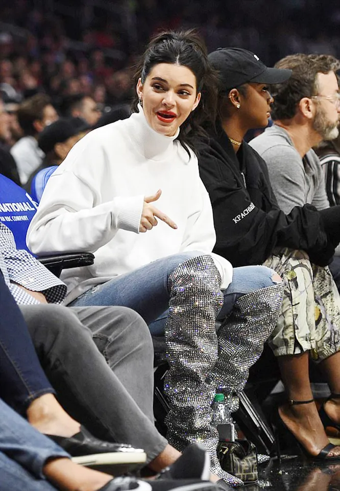 Кендалл Дженнер в сапогах Saint Laurent наблюдает за игрой бойфренда — Блэйка Гриффина