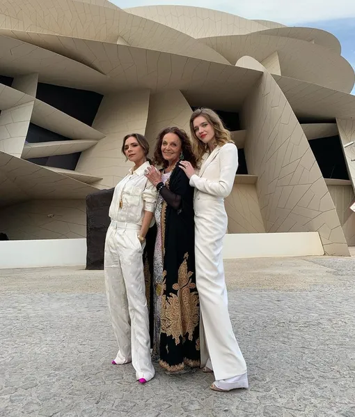 Немногие умеют так непринужденно и элегантно носить брюки со штрипками, как Бекхэм. Придумать, с чем миксовать эти «петельки», — целое искусство, которым дизайнер овладела в совершенстве. Самым практичным сочетанием станут однотонные брюки в паре с удлиненным жакетом в тон и классическими лодочками.