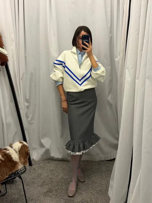 История повседневного спортивного гардероба неслучайно совпала с переосмыслением женской свободы. В то время как многие думали о возрождении Олимпийских игр, врачи критиковали женский гардероб: и корсеты в частности. К 1920-м женщины переоделись в одежду, позволяющую комфортно жить и свободно двигаться. Жан Пату первым уловил атлетическое настроение и запустил Coin des Sports, а Коко Шанель сделала костюмы из джерси. С тех пор каждый всплеск интереса к спорту отражался в моде: аэробика подарила нам велосипедки и легинсы, а бег — кроссовки. В 2026 году спортшик снова меняет оптику. Он перестает выглядеть утилитарно и учится работать в деловых и вечерних контекстах. Так, к дуэту из юбки-карандаш и голубой рубашки добавьте олимпийку. Это отличный пример, когда три вещи из разных миров работают как единый механизм.