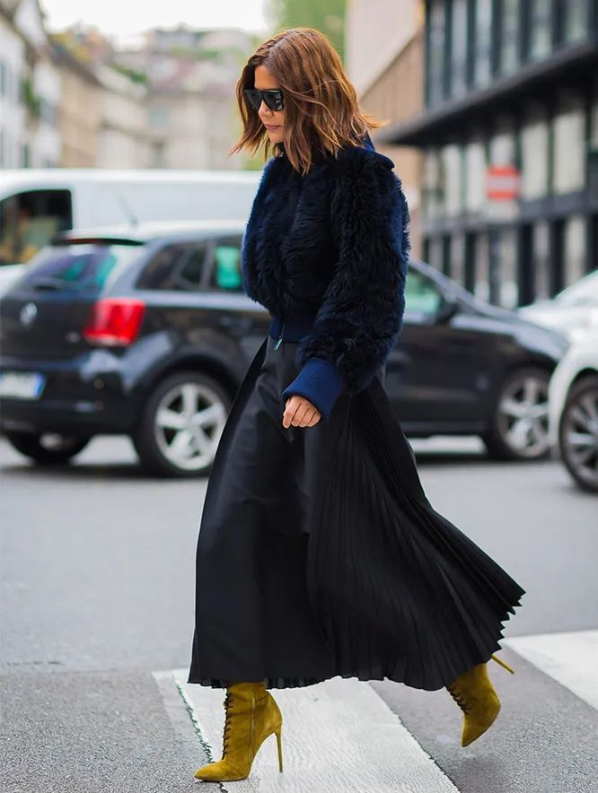 30 плиссированных юбок на осень, чтобы носить их с объемным свитером и высокими сапогами