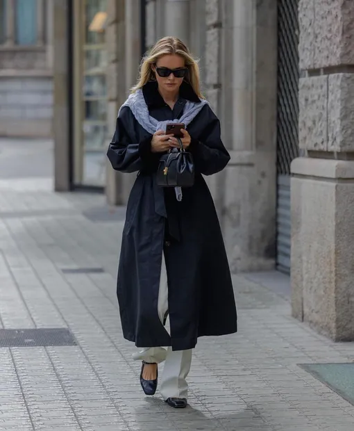 Прямые джинсы, ботильоны и оверсайз-пальто