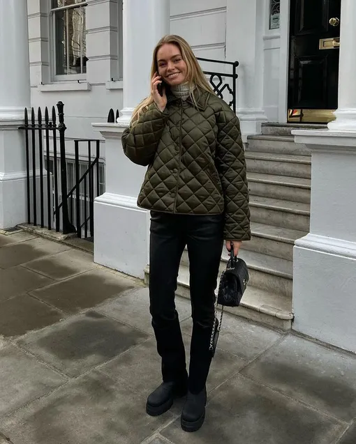 Один сезон сменяет другой, а стеганые куртки не теряют своей популярности. Неудивительно, ведь этот предмет гардероба можно с легкостью вписать и в классический, и в более спортивный образ. Стеганые куртки одинаково хорошо смотрятся и с платьями, и с юбками, и с джинсами, и со строгими брюками. Простое, но «статусное» комбо для дождливой погоды: стеганая куртка, джемпер или свитшот, черные леггинсы и высокие, непромокаемые сапоги на массивной подошве.
