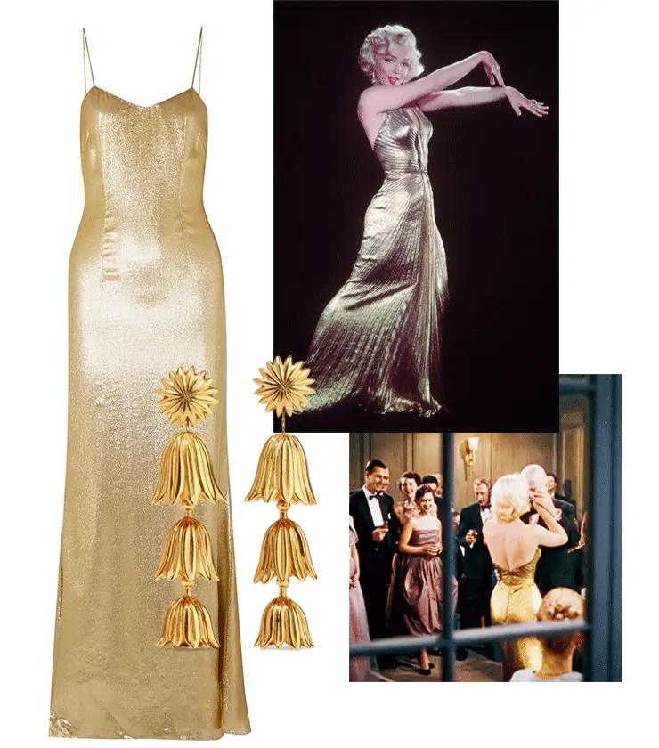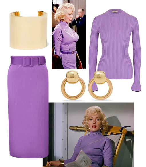 На протяжении всей истории девушка только и успевает менять наряды, и один оказывается лучше другого. Мерцающие вечерние платья, которым позавидовали бы и современные светские дамы; уютные трикотажные костюмы, подчеркивающие все соблазнительные изгибы Монро; элегантные юбки-карандаши и укороченные жакеты, в которых и в наши дни можно было бы ходить в офис; невероятно женственные пальто и стильные головные уборы — все это нам хотелось бы позаимствовать у Лорелей и сегодня. Мы выбрали 4 самых актуальных лука мисс Ли и попробовали повторить их, найдя альтернативные варианты этих вещей в онлайн-бутиках. Сомнений нет: подобные образы сведут с ума любого джентльмена!