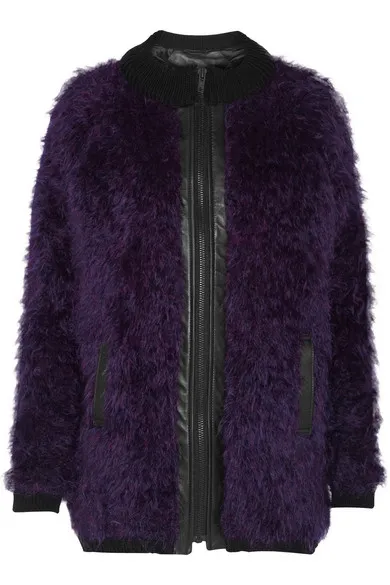 1. Фиолетовое полупальто из мохера с кожаной оторочкой добавит веселья в серые будни.