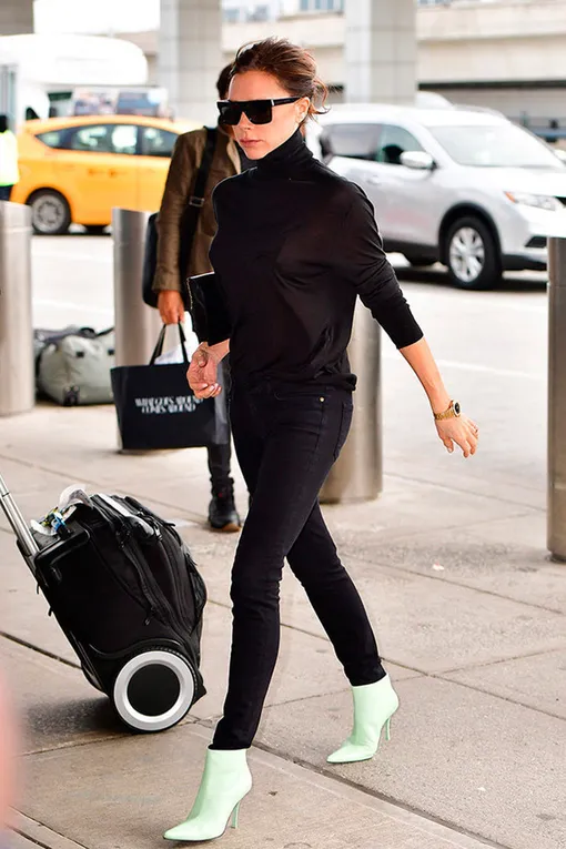 И наконец, скинни глубокого черного цвета — палочка-выручалочка для каждой модницы. Стройнят, сочетаются с любым верхом, отлично сидят по фигуре, не боятся слякоти и межсезонной непогоды и уместны всегда и везде — незаменимая пара, по мнению Виктории Бекхэм!