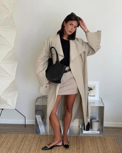 Парадоксально, но именно мини-юбка — одна из немногих версий, где каблуки могут быть даже неуместны. Образ с мини и туфлями может выглядеть излишне драматичным, устаревшим или даже вульгарным. Поэтому стилисты все чаще предлагают комбинировать мини с удобными туфлями. Например, слингбэками на плоском ходу.