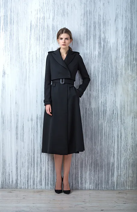 Ретрообразы уже который сезон не выходят из моды. А значит, стоит обратить внимание на этот черный плащ: изящный силуэт и элегантные вытачки превращают базовую вещь в наряд кинодивы 40-х годов.