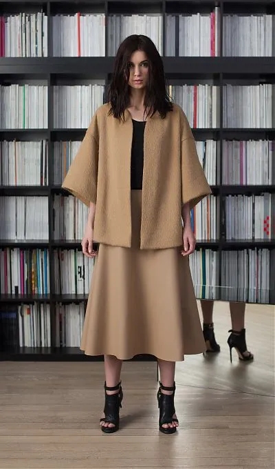 Уверена: дизайнеры и в новом сезоне предложат нам увлекательную игру с пропорциями. Хотите попробовать? Советую начать с костюма Chapurin, cостоящего из юбки миди и свободного жакета с укороченными рукавами.