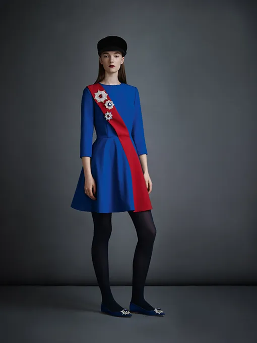 Судя по коллекциям Pre-Fall, военная тематика cнова вдохновляет дизайнеров. Однако на этот раз они трактуют милитаристские мотивы в куда более женственном и элегантном ключе. Платье с орденами авторства Анастасии Романцовой – лучший пример того, как в новом сезоне должен выглядеть модный «генерал в юбке».