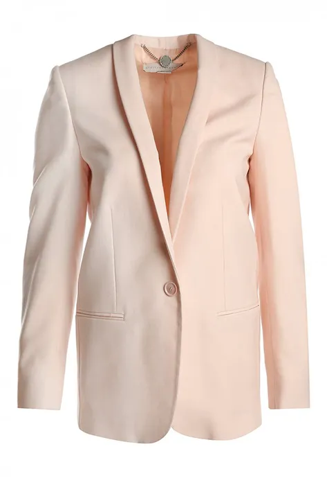 4. Тем, кто уже мечтает о лете, стоит обратить внимание на пудрово-розовый жакет Stella McCartney. Такой станет отличным дополнением к легкому шифоновому платью с цветочным принтом! Впрочем, не менее удачно эта модель будет смотреться и с голубыми джинcами.