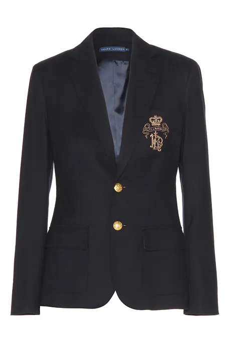 5. Темно-синий шерстяной блейзер Ralph Lauren – настоящая классика жанра! Благодаря золотым пуговицам и традиционной вышивке он добавит блеска строгому офисному гардеробу или сделает повседневный образ более нарядным.