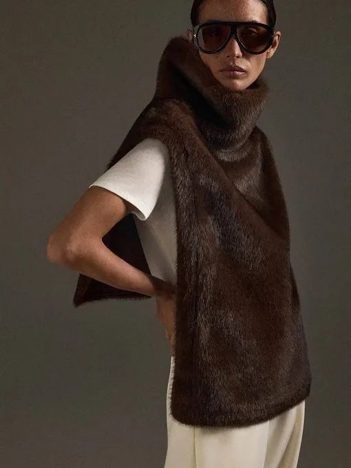 Цветовая палитра также радует разнообразием. Черные, бежевые и шоколадные опции выглядят максимально естественно и легко вписываются в минималистичный аутфиты. А если душа требует красок, обратите внимание на глубокие тона: темно-синий или винный. Как ее носить? Вариантов два, и оба выигрышные. Под верхнюю одежду, чтобы дополнительный «слой». Или поверх пальто. Так, мех становится акцентом. А в вечернем наряде он заменит горжетку. 5 моделей из искусственного меха вы найдете в галерее ниже.