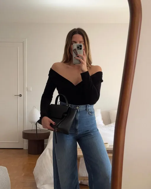 Главное правило, которым стоит руководствоваться при составлении повседневного аутфита с ladylike-топом — открытый верх + закрытый низ. Из-за того, что мы максимально подчеркиваем ключицы и шею, необходимо сбалансировать комплект, а также пропорции и закрыть ноги: лучше всего с этим справятся базовые джинсы прямого кроя, шелковая юбка макси в пол или брюки-палаццо. Обувь в таком случае тоже должна отвечать настроению топа: классические слингбэки, мюли в тон модели, офисные лодочки или босоножки на устойчивом каблуке-kitten heel — таких вариантов бесконечное множество. Самое главное — чтобы они не были очень «громкими» и не перетягивали все внимание на себя: добиться такого эффекта поможет пара без ярких деталей и слишком высокого каблука или танкетки. Что касается сумки, то перед вами открывается свобода выбора в зависимости от того, для какого мероприятия готовится ваш лук: если это прогулка в подругами — возьмите с собой удобную хобо, если свидание — не забудьте захватить клатч в ретро-стиле, ну а если вы собираетесь на деловую встречу в рамках офиса — лучшим вариантом станет сумка-боулинг.