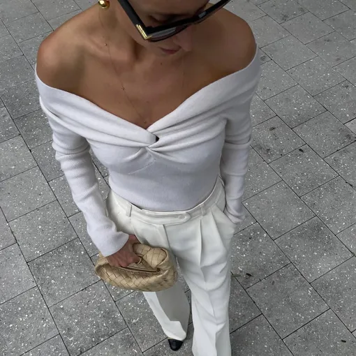 Глобальная тенденция на эстетику ladylike продолжает захватывать гардероб модниц: после актуальных лодочек и стильных платьев с приталенным силуэтом, очередь дошла до летних топов. Теперь благодаря тренду на абсолютную женственность самыми желанными моделями стали вариации с открытыми плечами: они уже были во всех магазинах в начале прошлого лета, а теперь вернулись за реваншем. Благодаря четким линиям, подчеркивающим зону шеи и декольте, они обнажают ключицы и добавляют аутфиту простой элегантности. У таких топов две разновидности — они могут быть с рукавами, которые закрывают зону предплечий, а также без них. Выбирать стоит исходя из ваших нужд: если вы планируете носить такую модель и осенью, то советуем присмотреться к более закрытым вариантам, а если вы желаете больше открытых зон, то лучше всего для такой задачи подойдет простой топ без рукавов. Ниже рассказываем, модели в каких цветах будут в тренде этим летом, и как стилизовать этот женственный топ с базовыми предметами одежды.