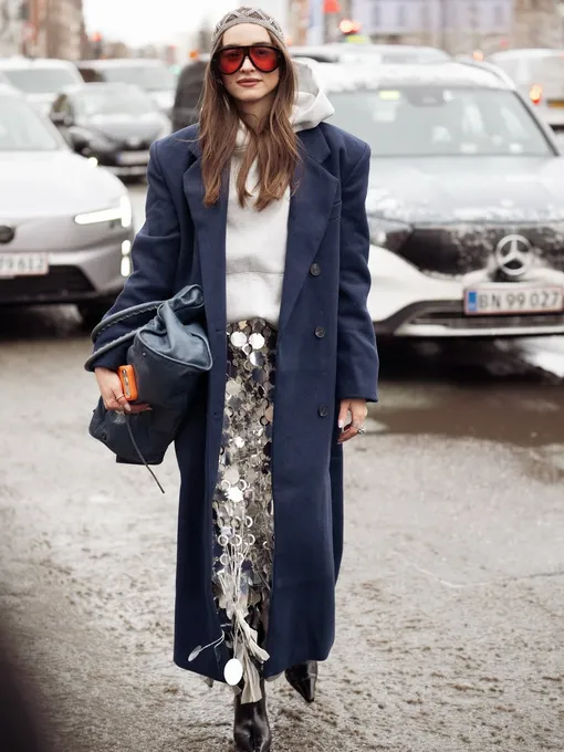 Если после праздников в шкафу осталась юбка с пайетками, подарите ей вторую жизнь. Контраст — ваш главный союзник. Сочетайте выразительный «низ» с простым серым худи. Сверху — пальто, а в качестве обуви — сапоги. Образ балансирует между расслабленностью и нарядностью, и поэтому отлично сработает. Эти трюки помогут прожить последний холодный месяц с удовольствием и без ощущения стилистической паузы до весны.