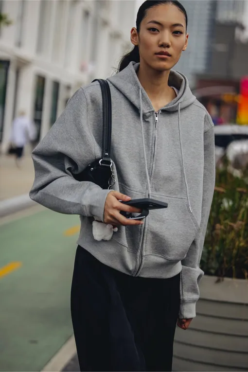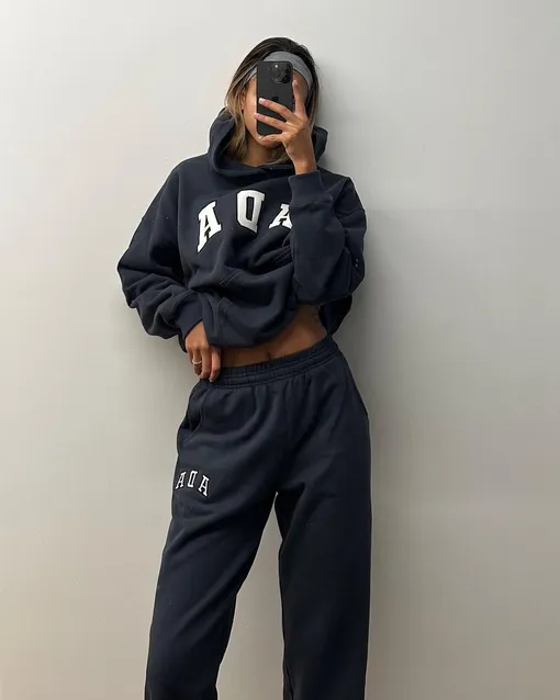 Идеальный зимний спортивный костюм — обязательно утепленный. В таком на улице будет тепло и комфортно даже в самые суровые морозы. Выбирайте опции из футера или плотного хлопка с начесом: они не только хорошо греют, но и очень приятны к телу, что обеспечивает дополнительное ощущение комфорта. Фасон составляющих костюма выбирайте на свой вкус: свитшот с круглым вырезом или худи на молнии, джоггеры с «манжетами» или классические широкие спортивные брюки.