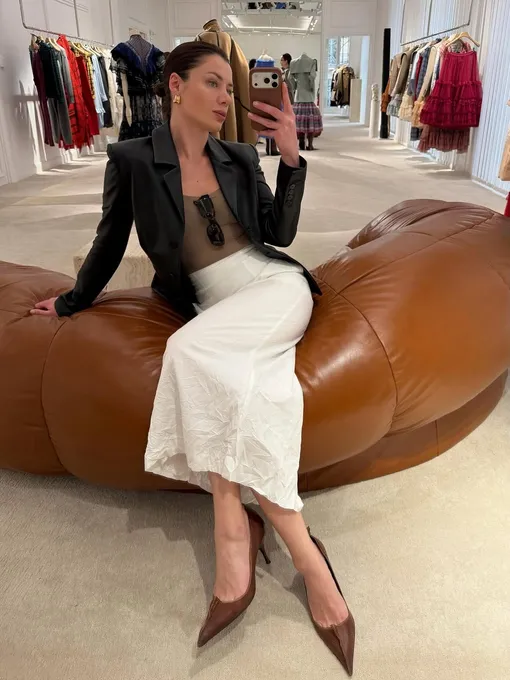 Туфли с Т-образной перемычкой — вариант для тех, кто ценит детали. Вертикальный ремешок вдоль подъема, соединенный с горизонтальным на щиколотке, формирует изящную линию и фиксирует стопу. В движении это дает не только комфорт, но и красивую походку. Этот силуэт в мире моды известен со времен «ревущих» 20-х, позже мелькал в 90-х и нулевых, но именно сейчас звучит особенно свежо. В сочетании с миди он раскрывается максимально точно. И такое решение прекрасно впишется даже в деловой комплект.