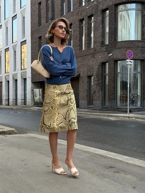 Мюли — наш фаворит теплого сезона. Открытый мыс, лаконичная форма и ощущение воздуха делают их идеальной парой для лета. Светлые модели особенно универсальны: они легко вписываются в любой образ с миди. Попробуйте сочетать их с фактурными вещами — например, юбкой с анималистичным принтом и мягким кардиганом. Юбка миди дает пространство для экспериментов, а правильная пара обуви помогает задать нужное настроение. Остается только выбрать, какое именно сегодня ближе вам.