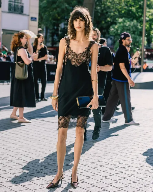 Длина в этом тренде нас никак не ограничивает: в пол, миди или мини — ориентируйтесь на свой ритм жизни, тип фигуры и мероприятие. Цвет — почти без альтернатив. Черный подчеркивает изящество кружева и делает его максимально выразительным. С обувью все просто: легкость платья поддерживают туфли-слингбэки, босоножки или мюли. В более спокойных повседневных образах подойдут балетки или тапочки-бабуши. Черное кружевное платье не требует сложной стилизации. Оно само задает тон, а вы лишь дополняете его правильным окружением. В офис носите его с жакетом и вместительной сумкой-тоутом. А на выход дополните массивными серьгами или колье, чем-то максимально вечерним. Вам остается только выбрать свою версию — ту самую, в которую вы влюбитесь сразу и, скорее всего, навсегда.