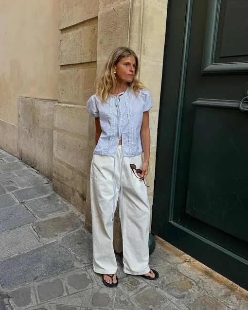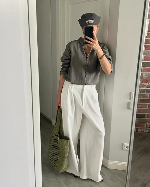 Светлые брюки — это универсальный элемент, который идеально вписывается как в повседневные аутфиты, так и в более формальные луки. Для создания офисного образа комбинируйте их с рубашками из легкого хлопка или струящегося атласа. Сверху, если прохладно, можно добавить жакет. И совсем не обязательно в тон «низу». Если хочется чего-то более расслабленного, миксуйте с топом в крестьянском стиле, минималистичными сандалиями и плетеной сумкой. Можно ли носить их вечером? Конечно. В этом вам помогут красивый топ, к примеру, с открытыми плечами и босоножки (или ультрамодные вьетнамки на каблуке). Одним словом — вещь не только стильная, но и практичная, если подойти к шопингу с умом. И не бойтесь их капризности: зная эти ключевые правила, вы с легкостью подберете вариант, который не только не будет просвечивать, но и прослужит вам не один сезон. А значит — можно смело инвестировать.