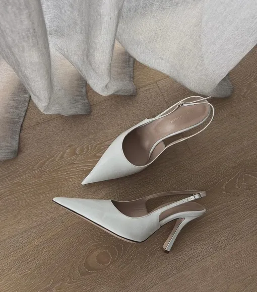 Хотя балетки и Мэри Джейн, безусловно, являются основой любого французского капсульного гардероба, мы заметили, что парижанки часто отдают предпочтение в пользу универсальности и изысканности остроносых туфель-слингбэков. Удлиняющие ноги и легкие, такие туфли — лучшая обувь, которую француженки выбирают, когда хотят чувствовать себя элегантно, но комфортно. Главное —выбирайте не слишком высокий каблук, чтобы было удобно в течение всего дня.