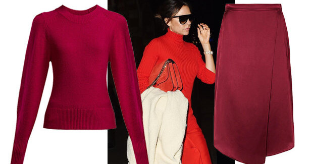 На днях Виктория Бекхэм вышла в свет в ярком монохромном луке. Дизайнер надела удлиненный свитер, летящую миди-юбку и лодочки тон в тон. Все вещи были насыщенного алого цвета. Образ получился настолько эффектным, что мы не смогли удержаться, чтобы не попробовать его повторить. И не только в алом, но и в других оттенках — модных этой осенью бордовом и лавандовом, спокойном бежевом, насыщенном синем. А обувь к этим нарядам вы можете выбрать на свое усмотрение: сыграть на контрасте или, напротив, подобрать что-то в совпадающей с остальной одеждой палитре.