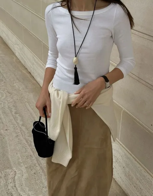 На фоне базовых вещей — нейтральной цветовой палитры и простого кроя — бренды привлекают внимание выразительными сережками, браслетами или ожерельями. Одна их таких тенденций — крупные бусы. Они в самых разных вариациях появились в коллекциях многих брендов. Главная фишка — в размере. Они должны быть заметны сразу, будь то одиночная нить или многослойная композиция. И не бойтесь выбирать массивные опции — чем больше, тем лучше.