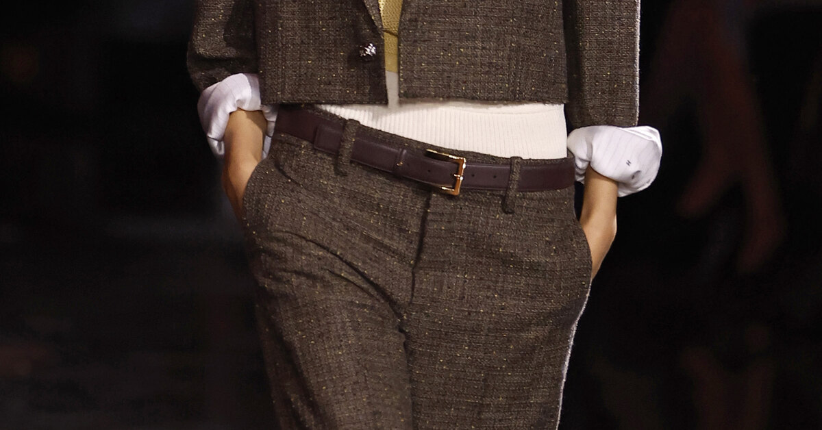 Где будем делать талию в этом сезоне? Дизайнеры единогласно ответили: чем ниже, тем лучше. Тренд вызывает споры (кто-то его любит, а кто-то ненавидит), но игнорировать его возвращение уже не получится. Отправной точкой принято считать показ Александра МакКуина «Нигилизм» сезона весна-лето 1994. Тогда дизайнер представил культовые «бамстеры» — брюки с экстремально низкой посадкой. Это было новое слово в мире моды. Но сама идея появилась раньше и постепенно формировалась в коллекциях разных лет еще задолго до МакКуина. Историю возникновения этой тенденции мы подробно разбирали в отдельном материале, а здесь хотим сосредоточиться на ключевом элементе сезона — брюках с заниженной посадкой.