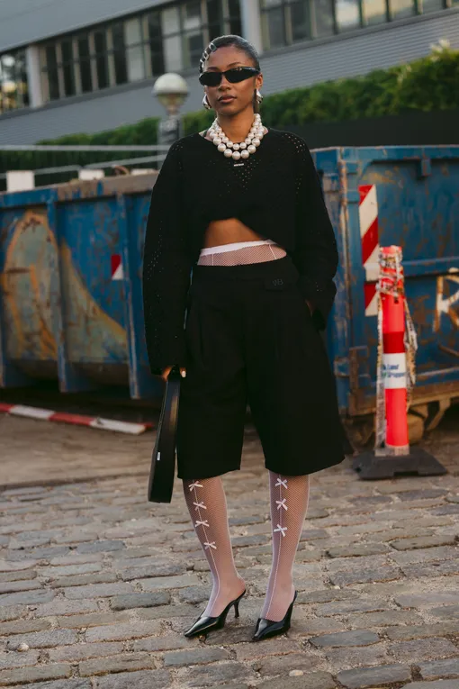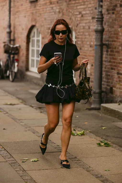 Как выбрать правильные черные мюли? Во-первых, обратите внимание на каблук — он не должен быть слишком высоким и причинять дискомфорт при ходьбе. Именно поэтому лучшим вариантом станут блочные каблуки, сплошная танкетка, «рюмочки» или kitten-heel. Во-вторых, рекомендуем присмотреться к материалу, из которого сделана ваша пара. Самый классический вариант исполнения — кожа. Однако существуют и другие, более необычные опции, который способны превратить базовый образ в стейтмент-комплект. Среди них — замша, атлас, сетка или мех. Еще один важный момент — детали и фурнитура. Если вы хотите приобрести модель вне трендов, то рекомендуем избегать мюлей с «отвлекающими» особенностями. Однако в случае, если ваша цель — модная пара на сезон, то лучшим выбором будут цепи, бахрома, винтажные потертости и даже кокетливые бантики. Также не забывайте о самом мысе изделия. Если летом были популярны открытые носы, то сейчас лучше вложиться в максимально закрытую пару. Будет ли мыс острым, круглым или квадратным — решать только вам.
