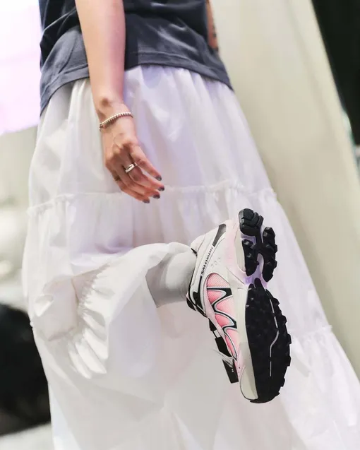 Горпкор с нами уже несколько лет, и мы даже можем заявить, что это не просто очередной тренд, а стиль жизни. И его адепты носят вещи, изначально предназначенные для походов и путешествий: удобные непромокаемые ветровки, парки и анораки, ботинки для хайкинга, теплые флисовые джемперы и куртки, широкие брюки-карго, удлиненные шорты, вместительные рюкзаки и поясные сумки, которые освобождают руки, и, конечно, практичные кроссовки. Такая обувь с инновационными технологиями давно перестала быть лишь выбором для активного отдыха — сегодня это полноценная пара для города. Стилизуйте ее и с брючным костюмом, и с летящими юбками.